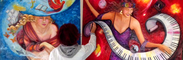 Pour Chantal Galiana, la peinture a été, dès son enfance (dans la Meuse), une passion: en effet, fille unique, Chantal occupait tous ses moments de solitude avec des dessins, des gouaches...margeant même les cahiers scolaires de visages, de regards, d'expressions... | |