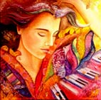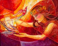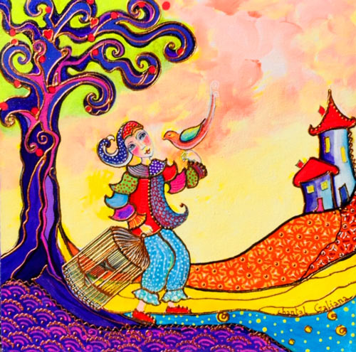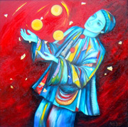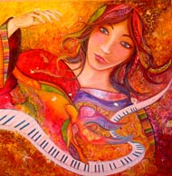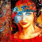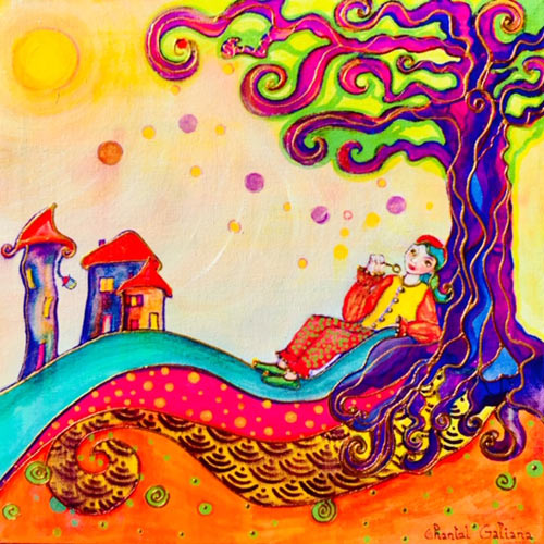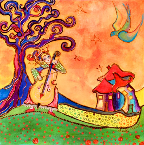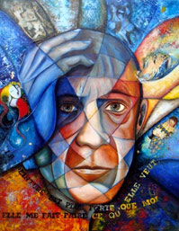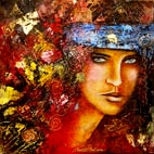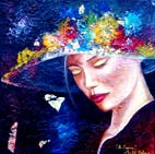 Les tableaux de Chantal Galiana sont tous traités sur des toiles de lin, à la peinture à l'huile d'où surgissent certains collages de feuilles d'or, de papier de soie... "L'essentiel pour Chantal est de dépasser la toile, de nous inviter dans un imaginaire propre à chacun, d'opposer à un pessimisme ambiant des couleurs fortes, gaies, et des thèmes qui nous conduisent dans des vies parallèles et plus profondes... Bref, un autre monde vital et nécessaire à partager...". |